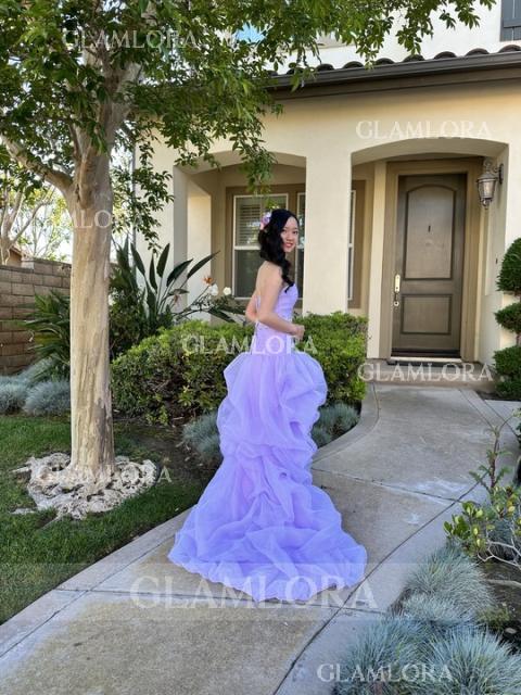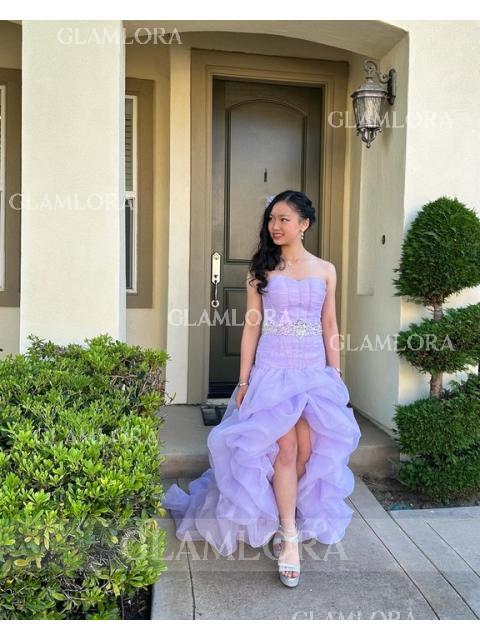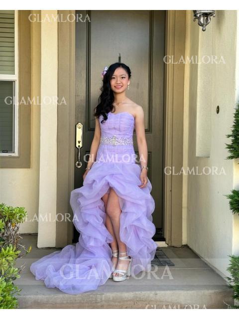 • A-line Chic Sweetheart Sleeveless Asymmetrical Organza Evening Dress With Beading