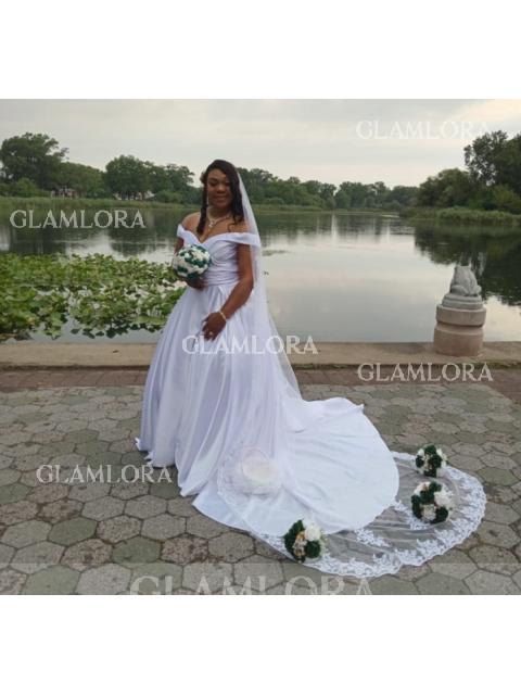 • A-line Off-the-Shoulder Sleeveless Court Train Fashion Satin Wedding Dresses