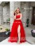 A-line Princess Halter Sleeveless Perfect Sweep Train Tulle Corset Prom Dress With Slit