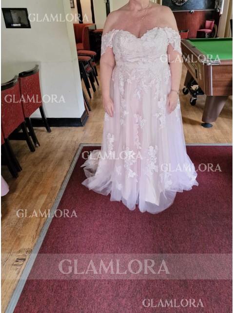 • A-line Princess Off-the-Shoulder Sleeveless Court Train Chic Tulle Wedding Dress With Applique