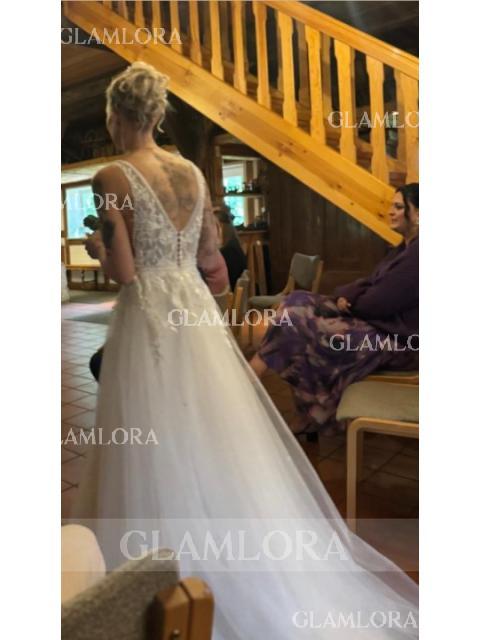 • A-line Princess V-Neck Sleeveless Sweep Train Exquisite Tulle Wedding Dress