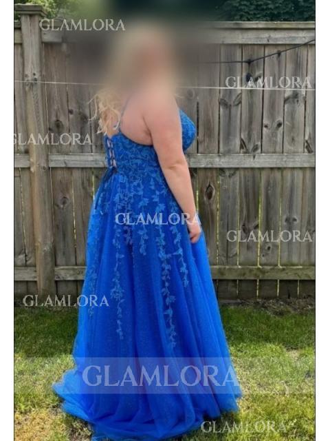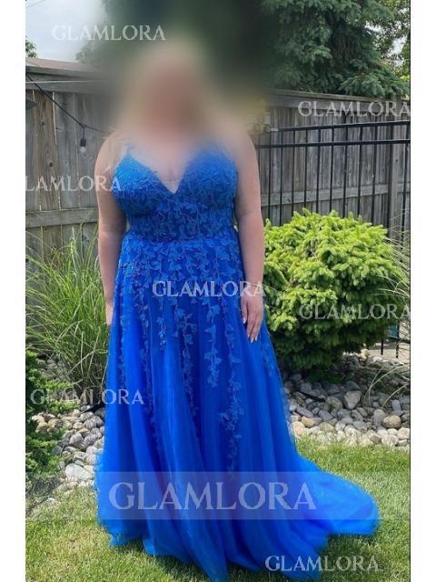 A-line Princess V-Neck Sleeveless Sweep Train Tulle Timeless Prom Dress - Glamlora
