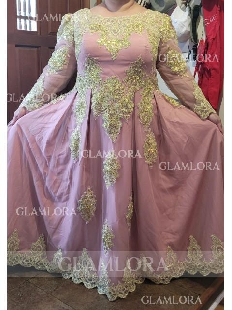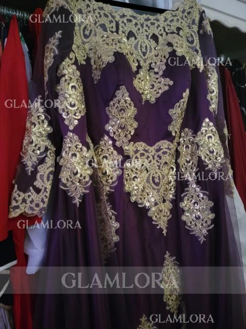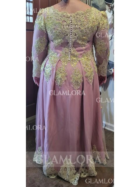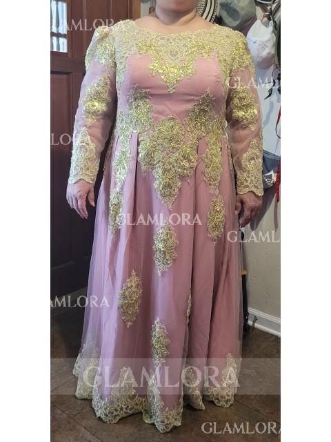 • A-line Scoop Perfect Long Sleeves Floor-Length Tulle Evening Dress With Applique