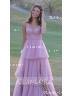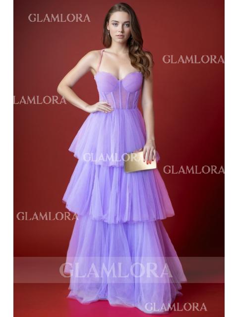 A-line Spaghetti Straps Sweep Train Tulle Corset Prom Dress - Glamlora