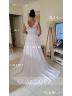 Radiate timeless elegance in this A-line wedding dress, boasting a flattering V-neckline and sleeveless design adorned with intricate lace appliques. Crafted from flowing chiffon, it cascades gracefully to the floor with a sweeping train, adding an extra touch of romance. Perfect for the bride seeking classic beauty and sophistication on her special day.