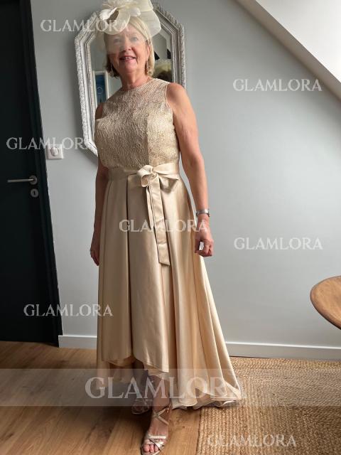 A-line Tasteful Scoop Sleeveless Asymmetrical Satin Mother of the Bride Dress
