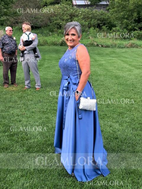 • A-line Tasteful Scoop Sleeveless Asymmetrical Satin Mother of the Bride Dress