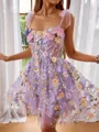 • A-line Trendy Straps Tulle Corset Short/Mini Homecoming Dress With Flower