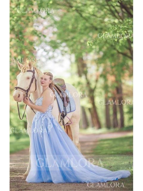 • A-line V-Neck Feminine Sleeveless Court Train Tulle Prom Dresses