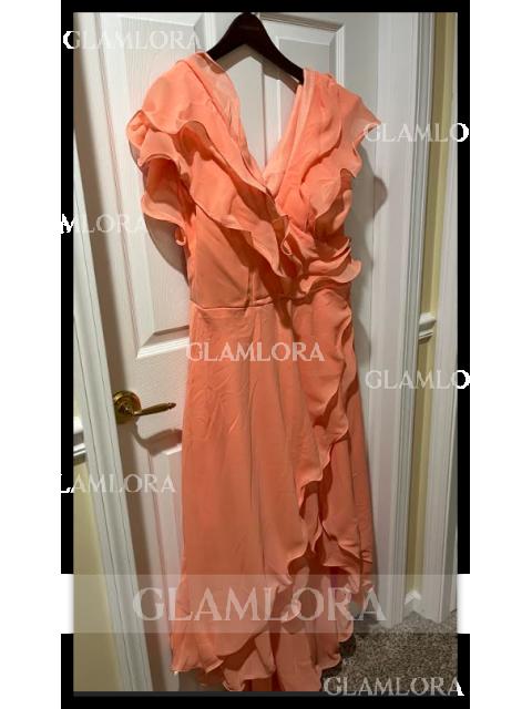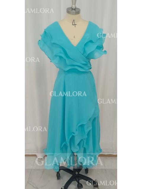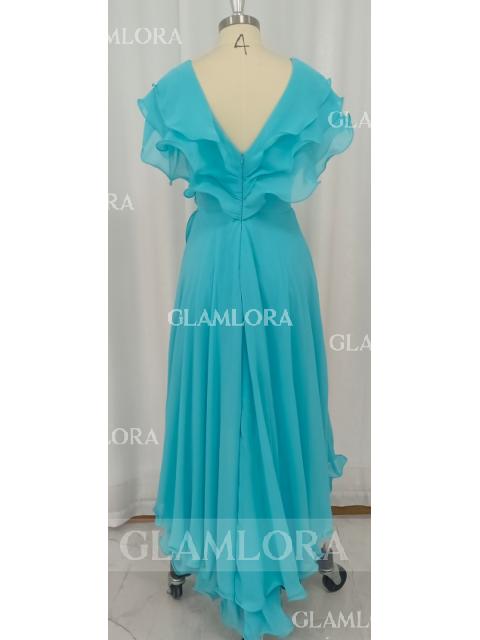• A-line V-Neck Sleeveless Asymmetrical Flattering Chiffon Mother of the Bride Dress