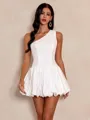 This A line one shoulder sleeveless mini taffeta dress features a sleek, structured silhouette with a chic asymmetrical shoulder design. Made from crisp taffeta, it holds its shape beautifully, offering a polished and stylish look perfect for parties, homecoming, or special occasions.