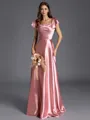 • Aristocratic A-line Square Short Sleeves Floor-Length Silk like Satin Bridesmaid Dress