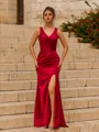 An aristocratic sheath prom dress crafted from smooth, flowing charmeuse, featuring elegant pleated detailing and a flattering V-neckline. The sleeveless design highlights its refined silhouette, while the floor-length hem creates a graceful, sophisticated look perfect for making a stylish entrance.
