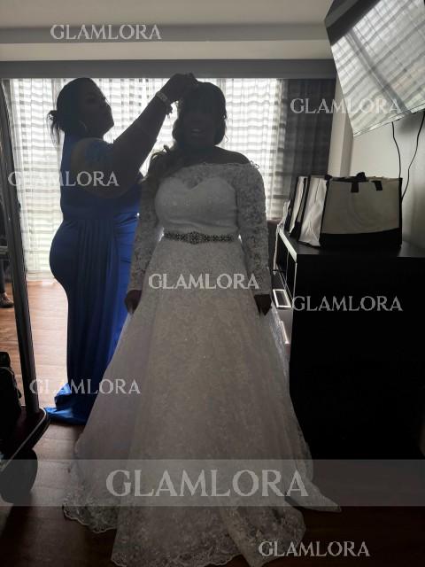Warning: Undefined property: Product::$size_chart in /data1/www/glamlora-com.myamz2022.com/htdocs/controllers/front/ProductController.php on line 1062 Ball-Gown Gorgeous Bateau Long Sleeves Floor-Length Lace Wedding Dress - Glamlora