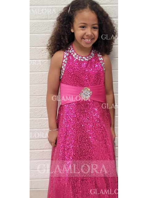 • Ball-Gown Halter Sleeveless Floor-Length Dreamy Sequins Flower Girl Dress