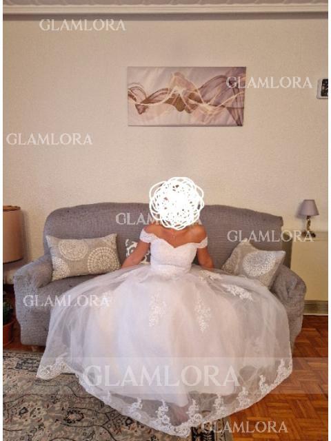 • Ball-Gown Princess Off-the-Shoulder Gorgeous Sleeveless Floor-Length Tulle Wedding Dress With Lace
