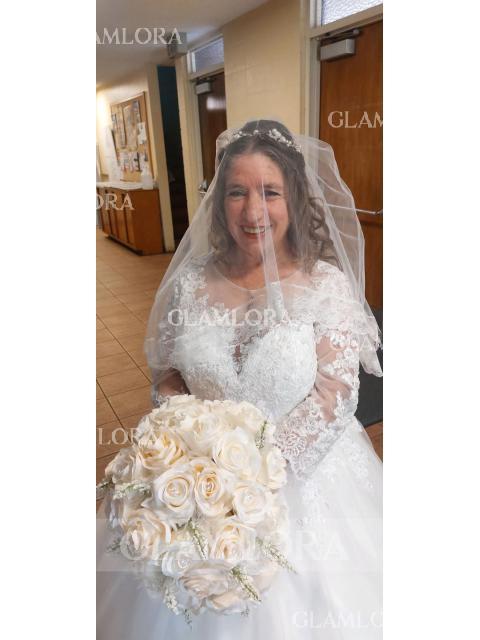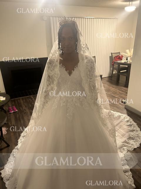 Note:The dress does not include any accessories in the picture, such as wraps/jackets, gloves, veil, handbag, etc. The tulle matches the model's skin tone and ships by default. If you want to change the tulle color or have questions about it, you may choose to Chat now or Email us.