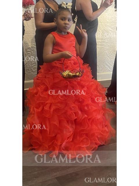 • Ball-Gown Scoop Sleeveless Ankle-Length Petite Organza Flower Girl Dress With Layers
