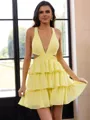 This Glamlora sleeveless chiffon mini dress features a fitted A-line silhouette with cascading ruffles for a flowing look. The open back and concealed zipper allow for easy dressing without creating a clean, streamlined look. The lightweight chiffon fabric is breathable, making it an ideal choice for summer events or indoor parties. The mini skirt is designed for easy walking or dancing, while the fitted cut provides a comfortable, non-restrictive feel. This ruffled chiffon mini dress is perfect for proms, birthdays, or casual gatherings, perfectly blending fashion with everyday wear.