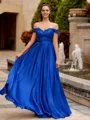 • Charming A-line Off-the-Shoulder Appliques Lace Floor-Length Satin Chiffon Prom Dress
