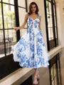 Glamlora's A-line Corset Dress is crafted from wrinkle-resistant chiffon, featuring a double-layer design that's both see-through and drapey. The A-line cut flares naturally from below the bust, subtly shaping the waist and hips. Adjustable spaghetti straps with hand-pleated bows provide even support without restricting shoulders. The knee-length length visually elongates the figure, minimizing exposure during everyday activities.