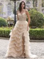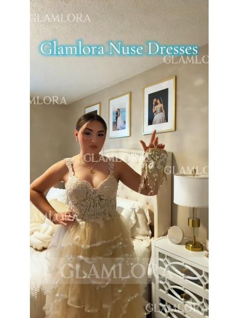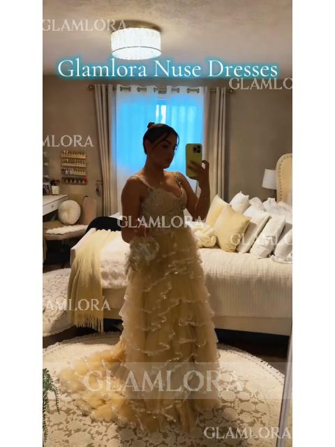 Charming A-line Straps Sequin Sweep Train Tulle Corset Prom Dress #GLY24P0057