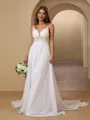 • Charming A-line V-neck Chiffon Cathedral Train Wedding Dress With Appliques Lace