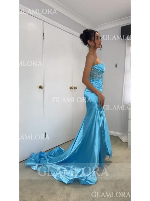 This elegant sheath dress features a straight silhouette with a sleeveless design, crafted from luxurious silk-like satin for a smooth and soft finish. The bodice is beautifully adorned with intricate lace appliques, adding a touch of sophistication and romance. With a graceful sweep train, this dress is perfect for formal occasions, exuding timeless elegance and style.