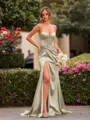 • Charming Sheath Sweetheart Pleated Sweep Train Silk Like Satin Corset Bridesmaid Dress