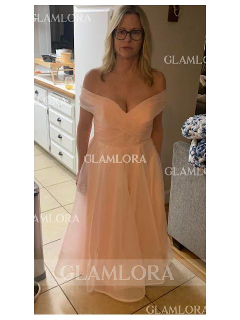 • Chic A-line Off-the-Shoulder Sleeveless Organza Tea-Length Homecoming Dress