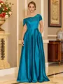 Chic A-line Short Sleeves Floor-Length Charmeuse Mother of the Bride Dress