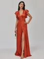 • Chic A-line V-Neck Short Sleeves Pleated Floor-Length Silk like Satin Bridesmaid Dress