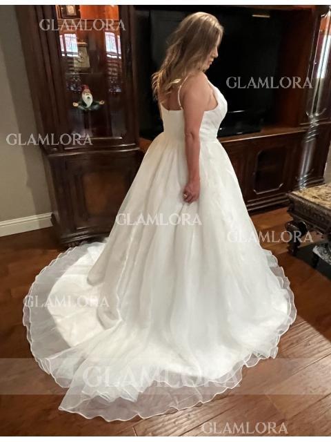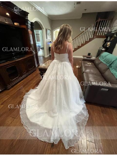 • Chic A-line V-Neck Sleeveless Court Train Organza Wedding Dress
