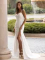 • Chic Sheath/Column Chiffon Ruched V-Neck Sleeveless Sweep/Brush Train Wedding Dress