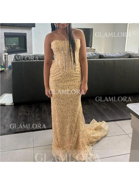 Chic Sheath/Column Straight Sweep Train Corset Prom Dress