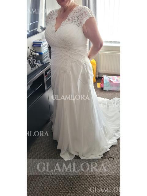 • Classic Empire Sweetheart Short Sleeves Sweep Train Chiffon Wedding Dress With Lace