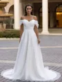 • Classy A-Line/Princess Tulle Ruched Off-the-Shoulder Sleeveless Sweep/Brush Train Wedding Dress