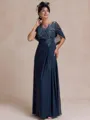 This mother of the bride dress features an A-line silhouette with a scoop neckline. It is adorned with appliques lace and made from chiffon, with a floor-length design that offers an elegant and refined look.
