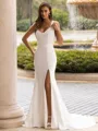 • Classy Sheath/Column Stretch Crepe Bowknot V-Neck Sleeveless Sweep/Brush Train Wedding Dress
