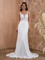• Classy Sheath/Column V-neck Charmeuse Sweep Train Wedding Dress With Appliques Lace