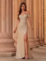 Classy Sheath Off-the-Shoulder Pleated Sweep Train Prom Dress - Glamlora