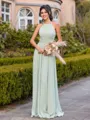 Delicate A-line Halter Pleated Floor-Length Chiffon Bridesmaid Dress