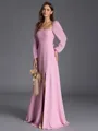 Delicate A-line Square Long Sleeves Bow Floor-Length Chiffon Bridesmaid Dress