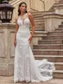 • Delicate Sheath/Column Lace Scoop Sleeveless Court Train Wedding Dresses