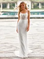 Radiate sophistication in this sheath wedding dress, boasting a square neckline, sleeveless design, and a graceful chapel train. With a flattering corset bodice, this gown exudes timeless charm and elegance.