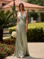 • Delicate Sheath V-Neck Pleated Floor-Length Silk Like Satin Bridesmaid Dress