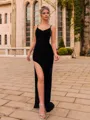 A delicate sheath prom dress crafted from soft, luxurious velvet, featuring a flattering V-neckline and a sleek sleeveless design. The sweep-train hem adds a graceful, sophisticated finish, while the rich velvet fabric creates a refined, elegant look perfect for making a stylish and memorable entrance.