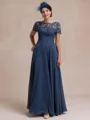Elegant A-line Scoop Short Sleeves Appliques Lace Floor-Length Chiffon Mother of the Bride Dress