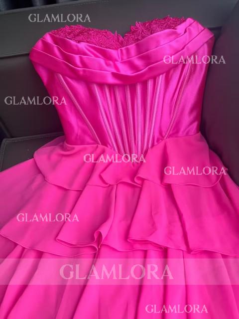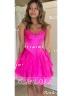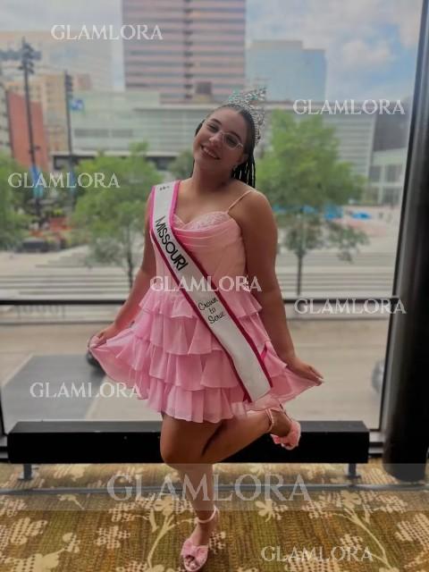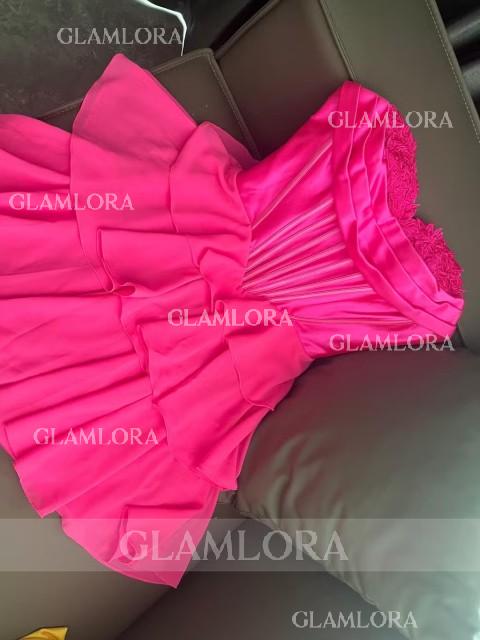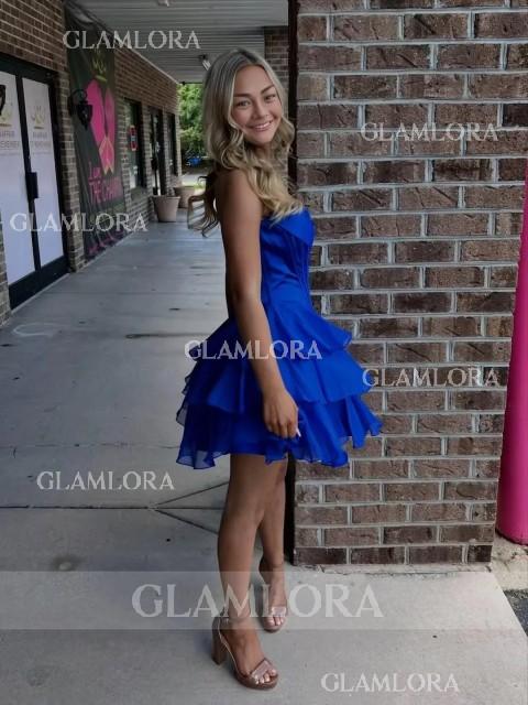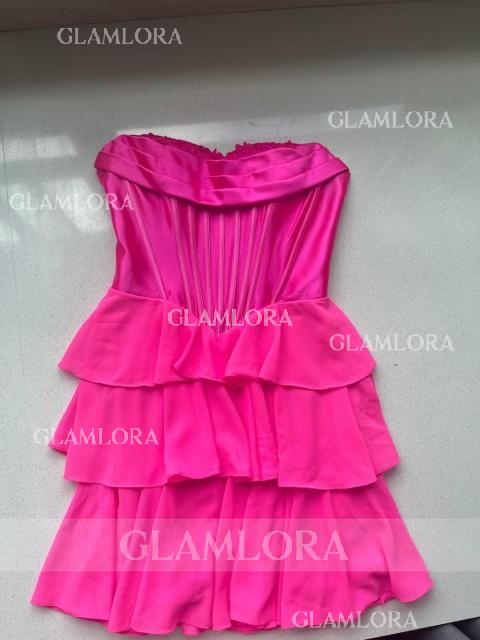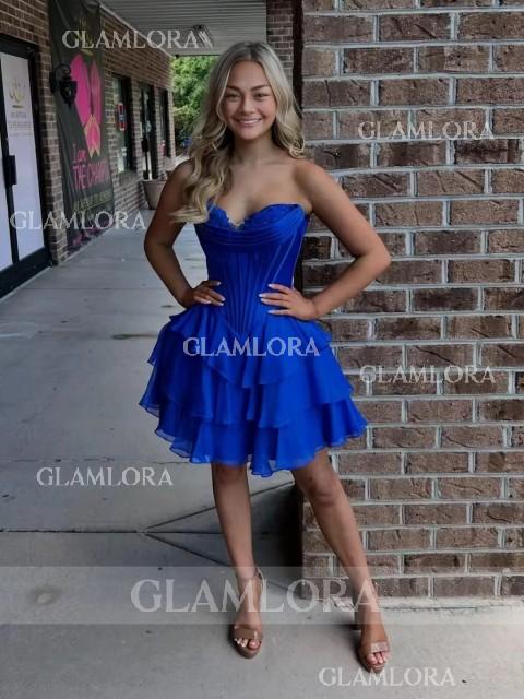 This A-line dress features a romantic sweetheart neckline and sleeveless design. Soft chiffon fabric with cascading ruffles adds graceful movement and feminine charm. The corset bodice shapes the waist, while the short/mini length offers an elegant and playful silhouette - perfect for special occasions.