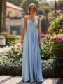 • Elegant A-line V-Neck Pleated Floor-Length Charmeuse Bridesmaid Dress